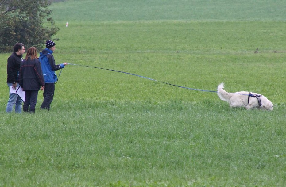 Das Fährten hat gut funktioniert, obwohl Nala zuerst etwas zögerlich gestartet ist, weil die Würstchen gefehlt haben. Beim Revier hat Nala super gearbeitet, allerdings wollte sie die (Holz-) Gegenstände nicht bringen sondern fressen.